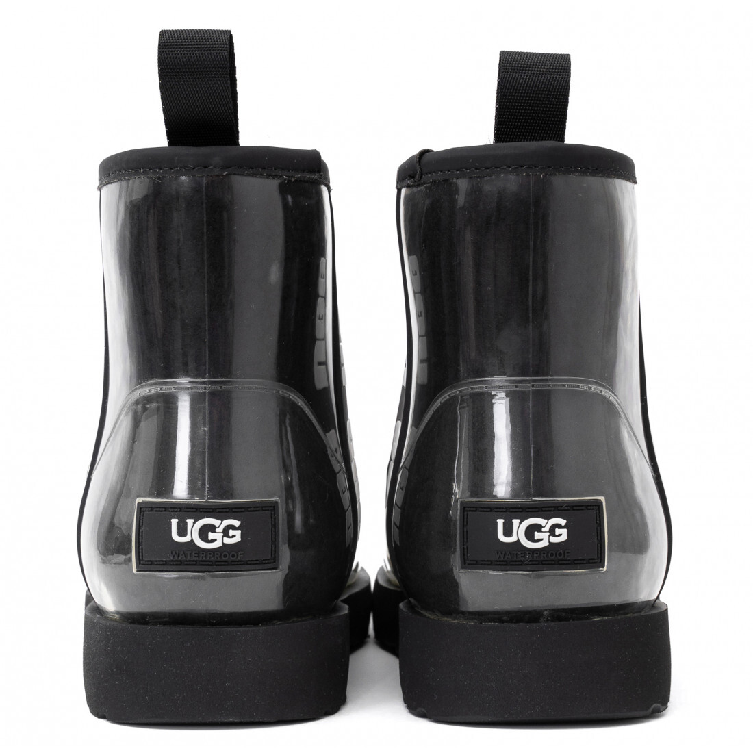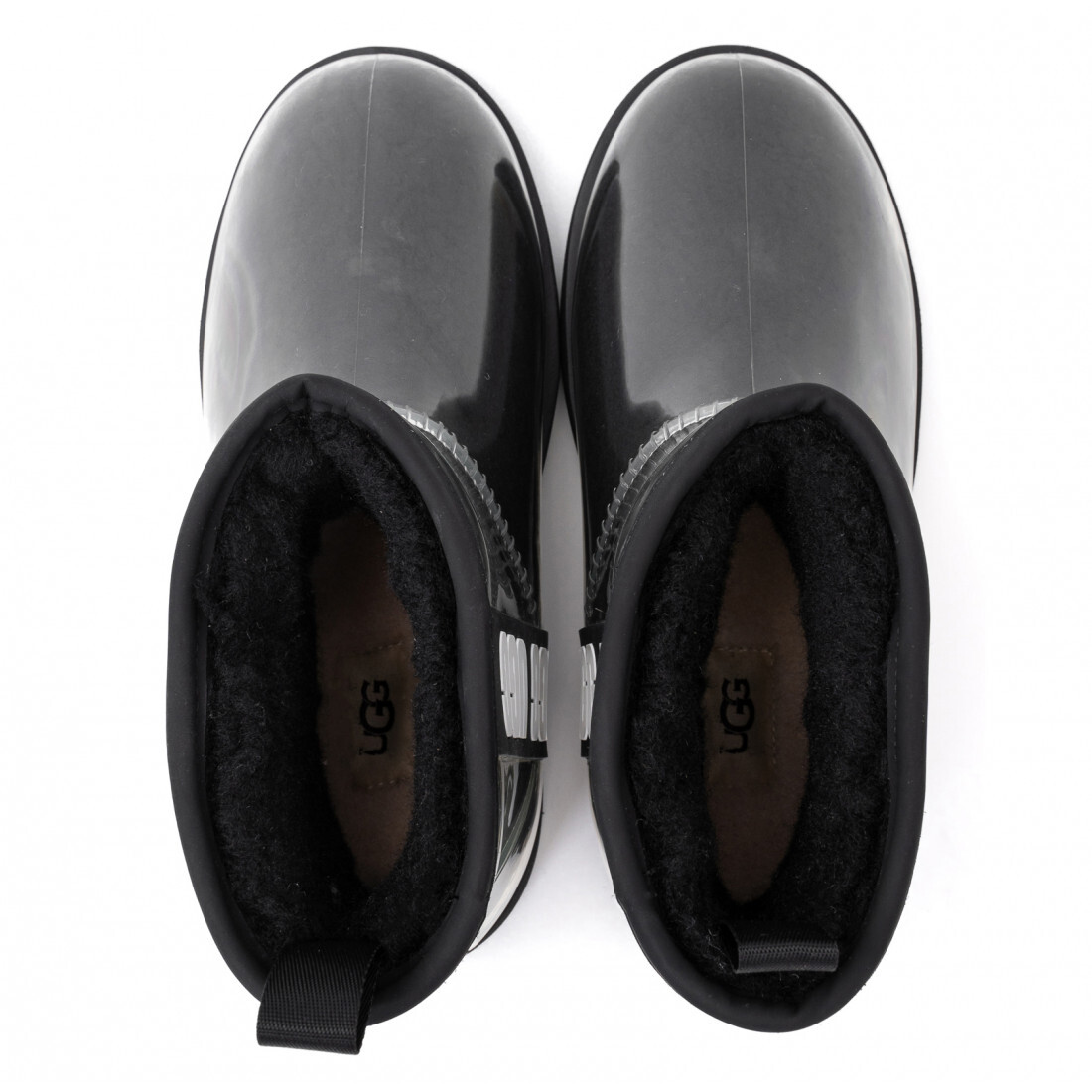 UGG Classic Clear Mini Black — стильные и практичные угги с водонепроницаемым глянцевым покрытием. Идеальны для дождливых и снежных дней: защищают от влаги, сохраняют тепло благодаря мягкой подкладке UGGplush™. Чёрный цвет легко впишется в любой образ, а компактный силуэт подойдёт для города и активных будней.