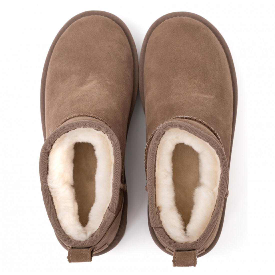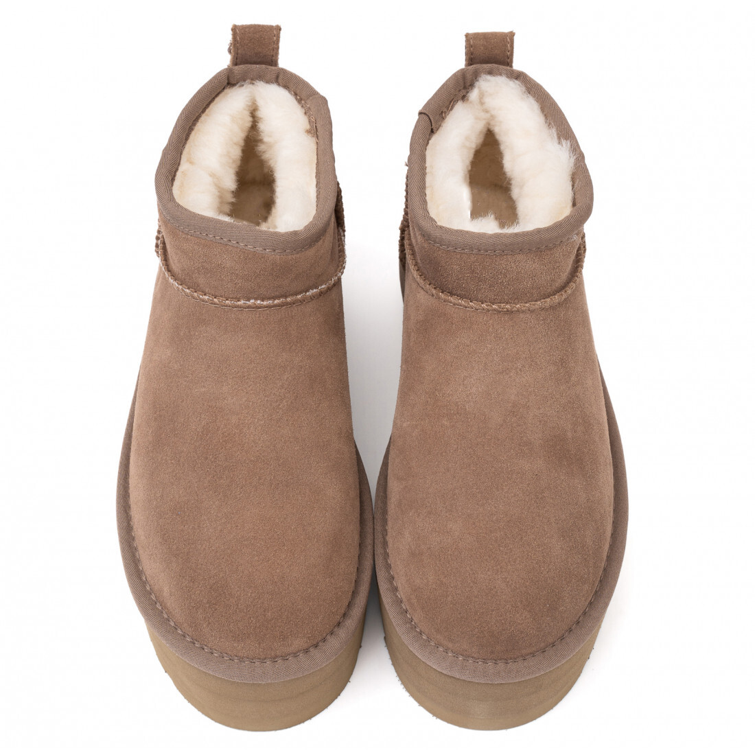 Угги UGG Classic Ultra Mini Platform Cappuccino — оригинальная модель премиум‑качества, сочетающая нежную натуральную замшу сверху и подкладку из 100% овчины. Модель относится к ультра‑мини высоте: укороченный верх удобно сидит на щиколотке, не сковывает движения. Платформа придаёт легкий подъём и визуально вытягивает ноги, но остаётся устойчивой и гибкой благодаря подошве из EVA‑композита. Цвет «Капучино» — универсальный нейтральный тон, который легко комбинируется с любыми вещами в гардеробе. Подходит для холодной осени и мягкой зимы, согреет и будет служить долго при бережном уходе.