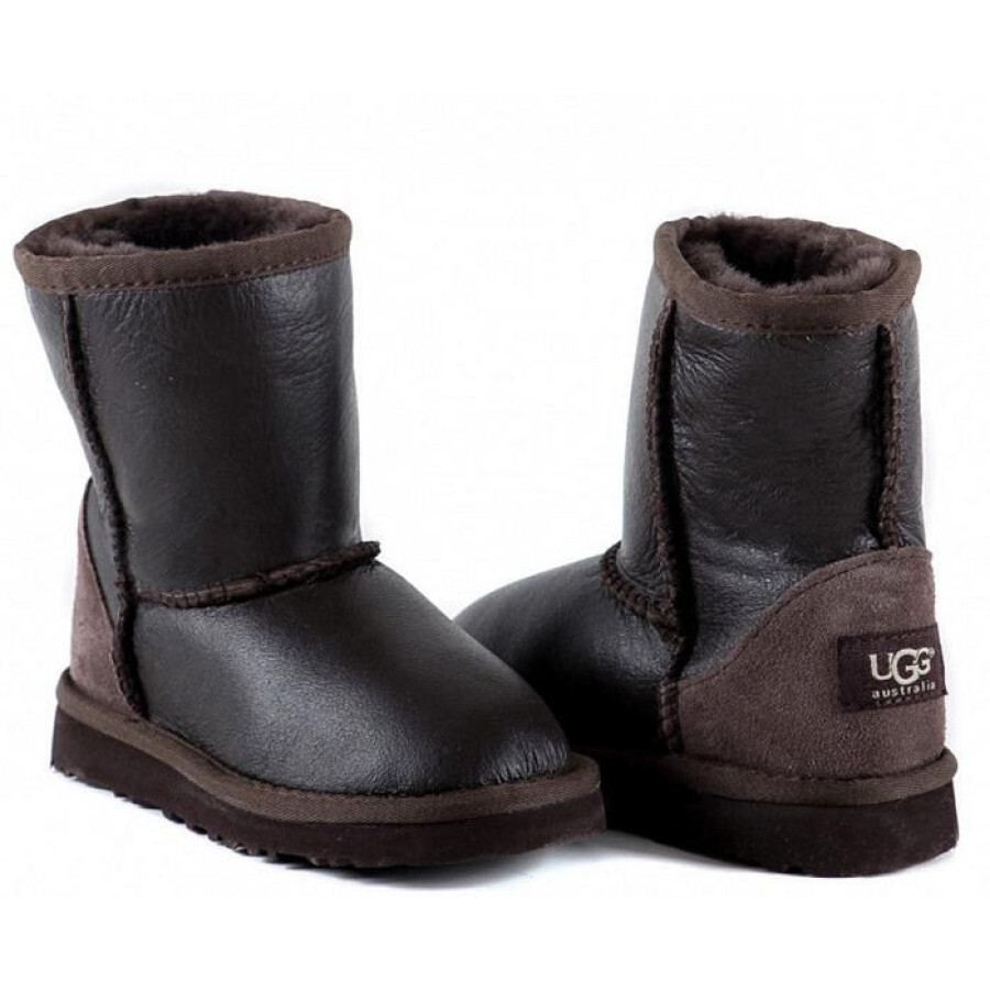 UGG Kids Classic Short Metallic "Chocolate" — модные детские угги с лёгким металлическим блеском в глубоком шоколадном оттенке. Натуральная овчина и замша обеспечивают тепло и комфорт в холодную погоду. Классическая укороченная модель с оригинальным дизайном. Оригинальные детские угги UGG Metallic Chocolate — купить с доставкой по России.