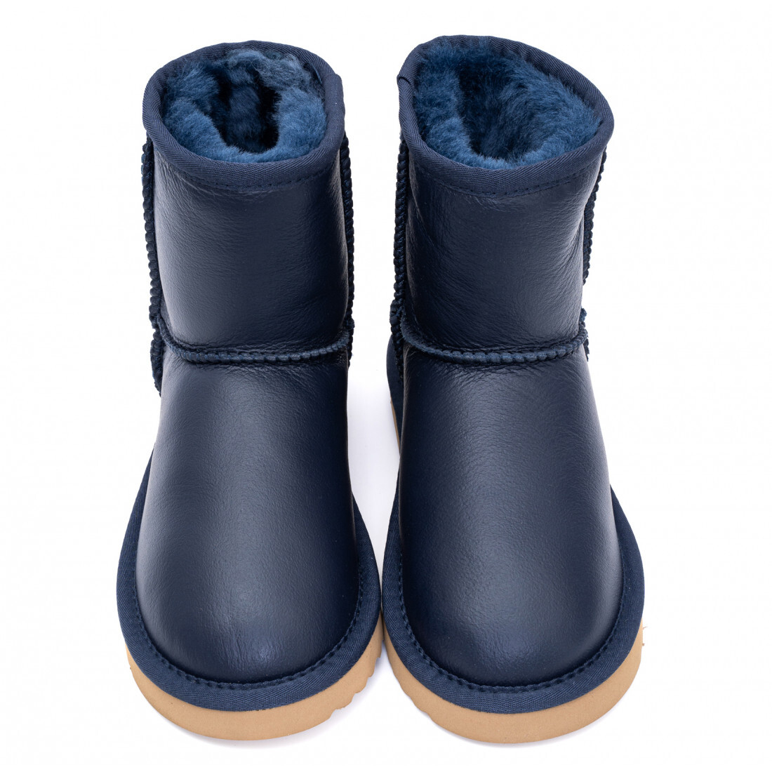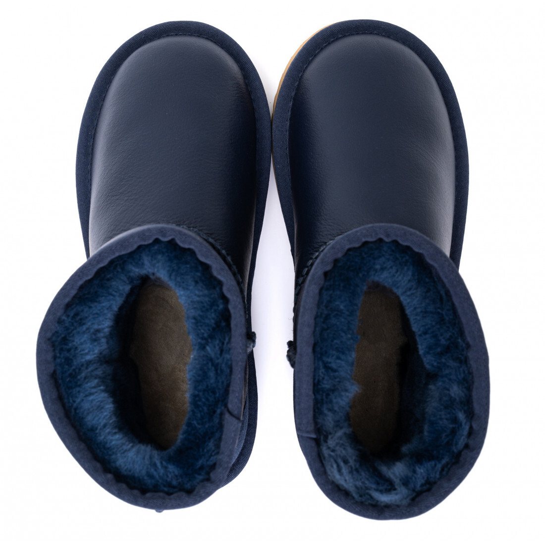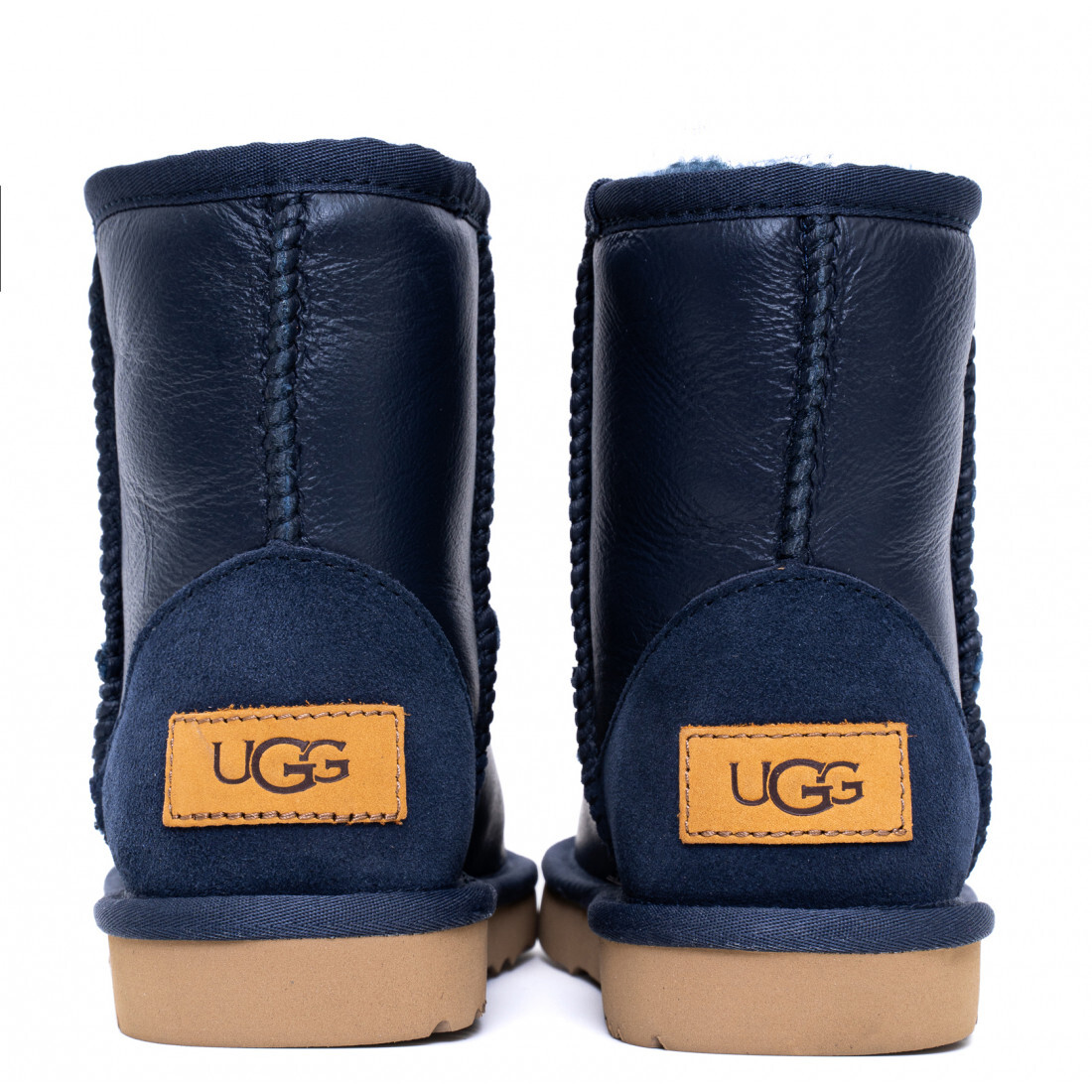 UGG Kids Classic Short "Metallic Navy" — стильные детские угги в глубоком синем цвете с лёгким металлическим блеском. Выполнены из натуральной овчины и замши, обеспечивают тепло, комфорт и долговечность в холодную погоду. Классическая укороченная модель с модным акцентом. Оригинальные детские угги UGG Classic Short Metallic Navy — купить с доставкой по России.