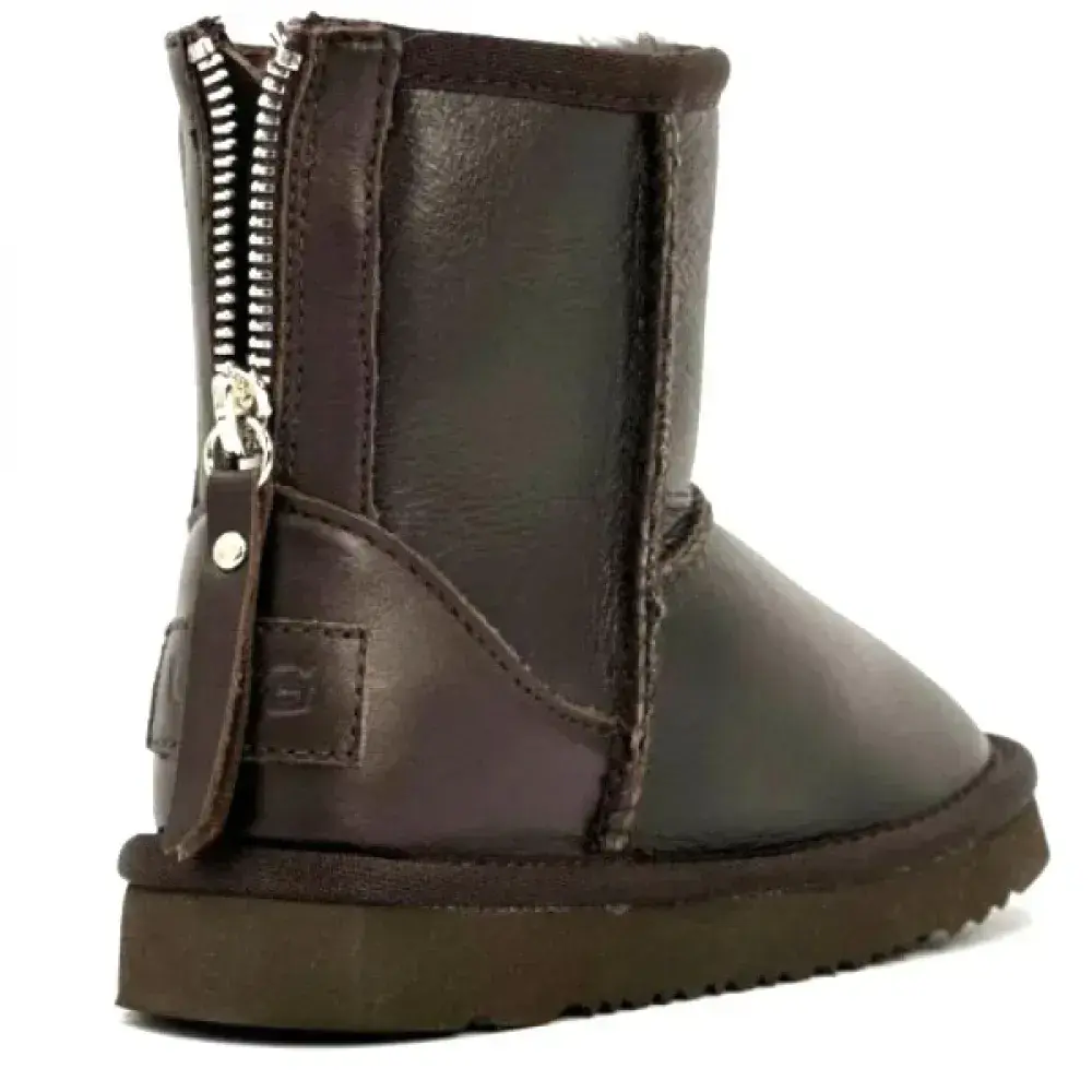 UGG Kids Metallic Zip "Chocolate" — модные детские угги в насыщенном шоколадном цвете с деликатным металлическим блеском и удобной боковой молнией. Выполнены из натуральной овчины и замши, отлично сохраняют тепло и обеспечивают комфорт в холодное время года. Оригинальные детские угги UGG Metallic Zip Chocolate — купить с доставкой по России.