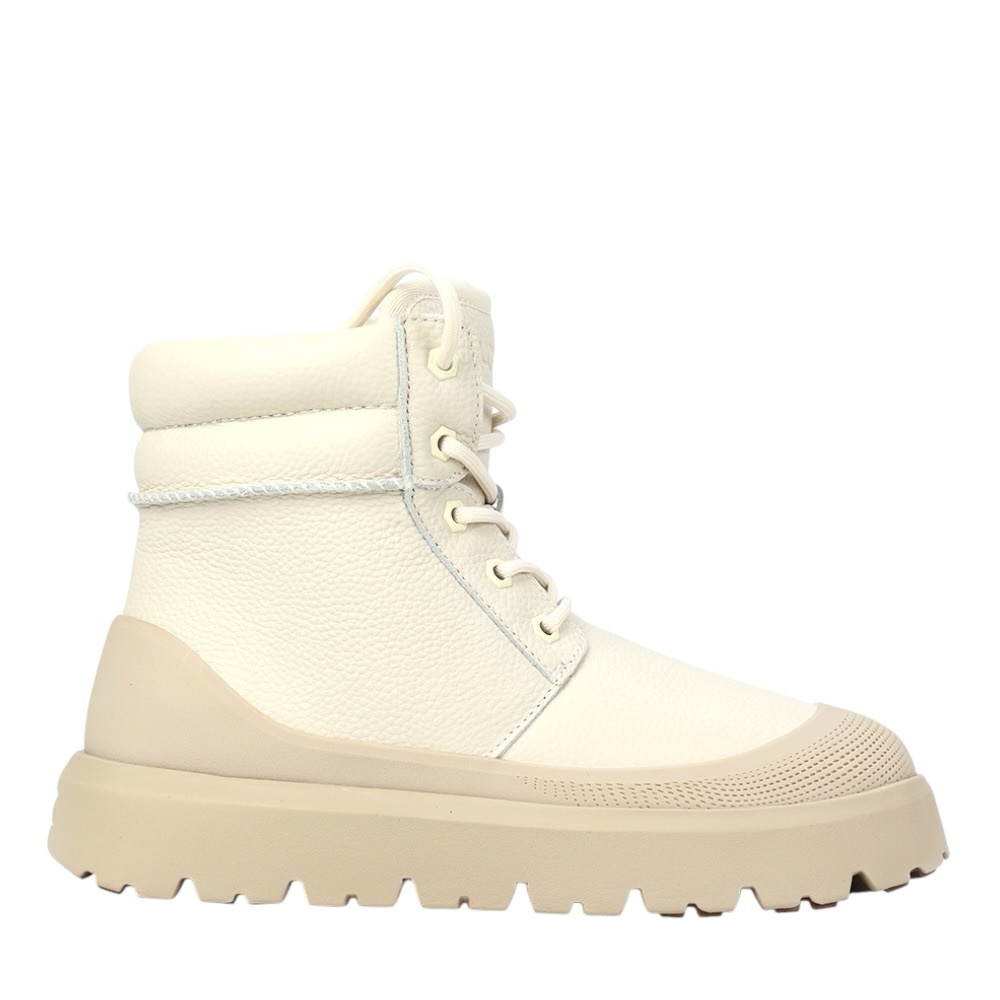 Ugg Neumel High Weather Hybrid “White” — оригинальные высокие ботинки с усиленной влагозащитой, созданные для городских условий и активного образа жизни. Верх модели выполнен из прочной замши и текстиля в чистом белом цвете и обработан водоотталкивающим покрытием, защищающим от дождя и снега. Внутри используется мягкая овчина UGGplush, которая сохраняет тепло и обеспечивает комфорт даже в холодное время года. Гибридная подошва EVA и резина сочетает лёгкость, амортизацию и отличное сцепление на любых поверхностях. Высокий силуэт Neumel High Weather обеспечивает дополнительную поддержку голеностопа и защиту от влаги, делая модель практичной и стильной одновременно. Отличный выбор для тех, кто хочет купить оригинальные Угг в Москве — тёплые, функциональные и элегантные ботинки.