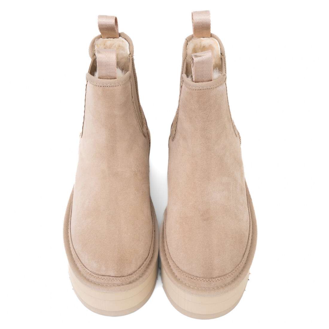 Ugg Neumel Platform Chelsea Sand — оригинальные угги с челси-силуэтом и трендовой платформой. Модель выполнена из натуральной замши в универсальном бежевом оттенке Sand, утеплена овчиной. Подходит для осенне-зимнего сезона. Купить в Москве с гарантией оригинала.