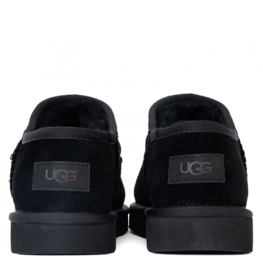 UGG Ultra Mini Tasman Black — оригинальные укороченные угги в классическом чёрном цвете. Верх выполнен из натуральной замши, внутри — тёплая овчина UGGplush®. Лёгкая подошва Treadlite by UGG™ обеспечивает комфорт и амортизацию при ходьбе.